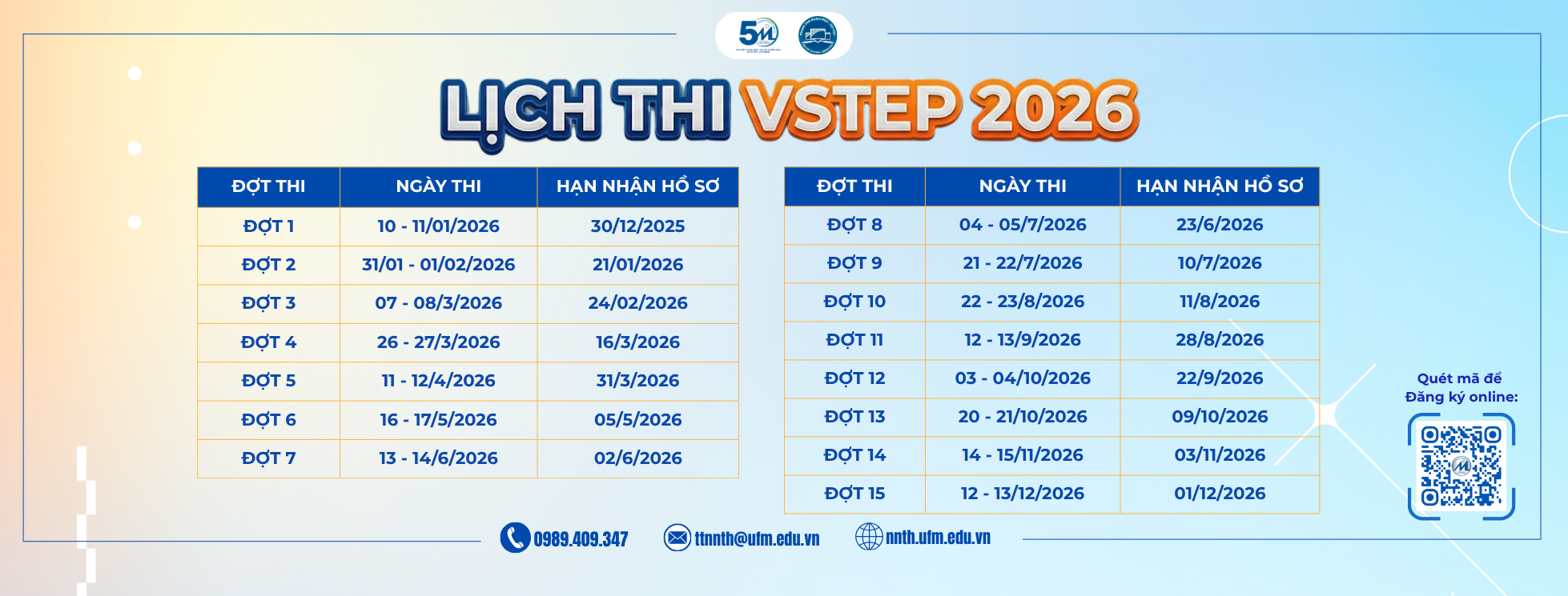 - Thông báo tổ chức thi và cấp chứng chỉ tiếng Anh bậc 3 đến bậc 5 theo Khung năng lực ngoại ngữ 6 bậc dùng cho Việt Nam (VSTEP) - Năm 2026 24/12/2025